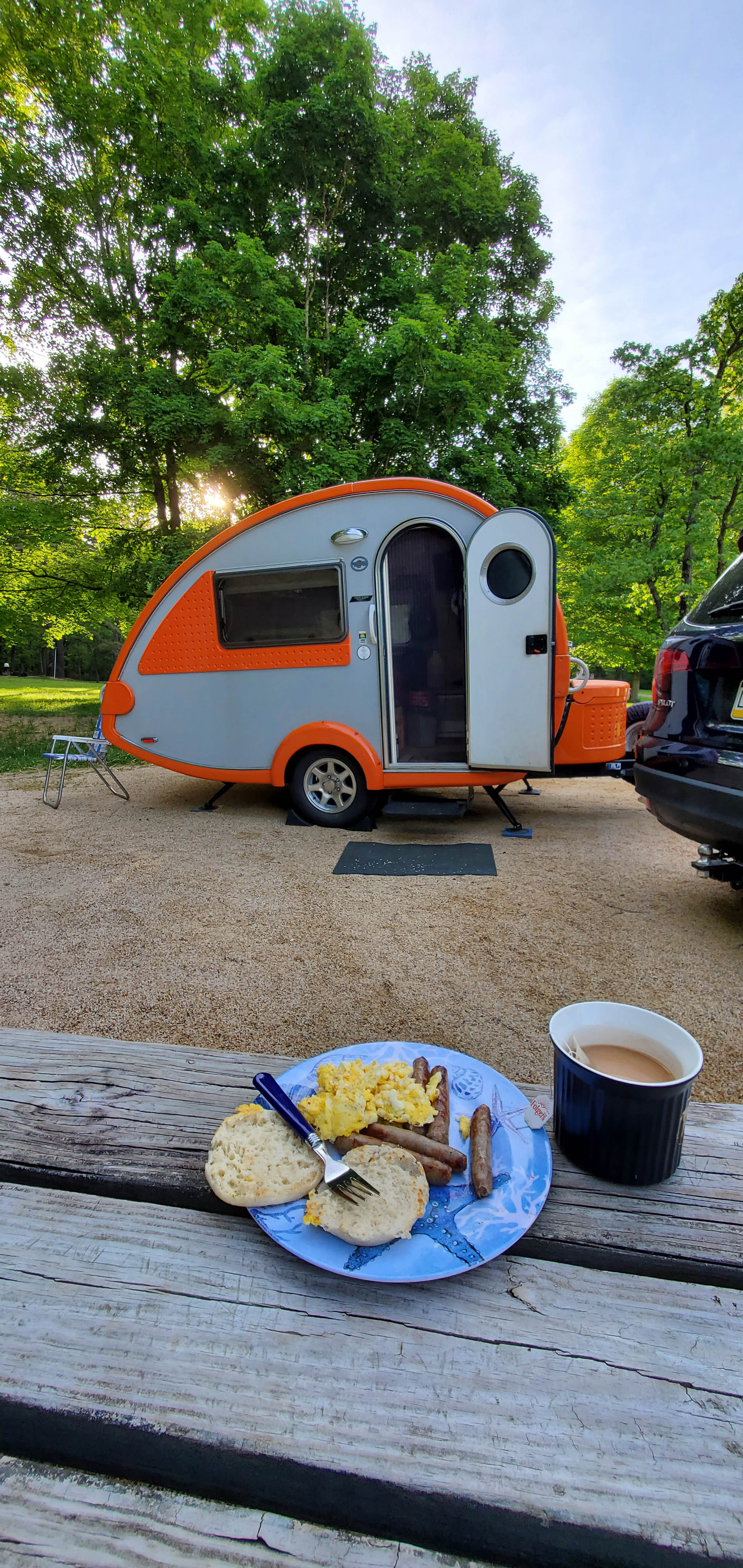 The following morning, my first adventure was to fire up the propane cooktop in the T@B, and then to determine whether or not the Folgers Singles were going to cut it for coffee. Well, they aren’t exactly Starbucks or Dunkin, but I think they will do for now.