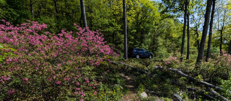 On the Blue Ridge Parkway just up the hill from the campground, the Rhododendron periclymenoides, (a pink azalea also called the pinxter flower) shrubs were in bloom.