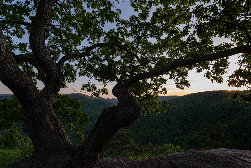 I returned to the Parkway later in the afternoon to try and grab some sunset photos. I had scouted out the 20-Minute Cliff view early in the day as having some sunset potential, depending on what visual interest the weather provided.